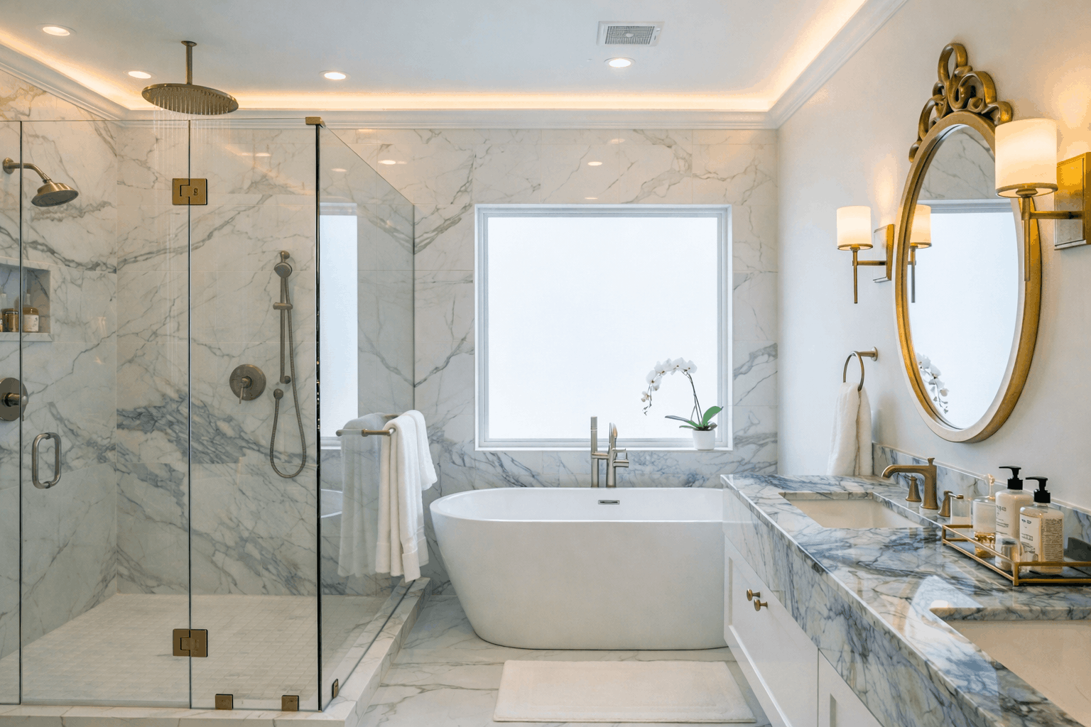 Compared to marble, quartzite generally holds up better in bathrooms, especially when it comes to scratching. Its durability is one of the reasons quartzite is often considered alongside granite in areas like kitchens and bathrooms, even though the day-to-day demands are different.